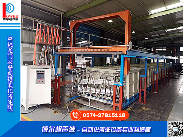 ②自動磷化線:根據(jù)客戶的工藝和產能要求確定設備的大小和配置,在槽體的兩側架設導軌,根據(jù)產量安裝1-2臺或多臺龍門式行車,由PLC控制行車按照設定的工藝順序和時間對各槽體內的吊具或者滾桶進行轉換,溫度和液位均為自動控制,在各槽邊和上下料位置安裝電機,控制滾桶的旋轉。